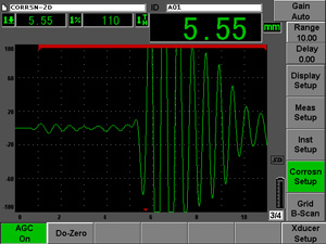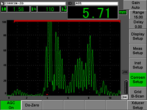 開發(fā)腐蝕模塊功能的目的是為進(jìn)行基本腐蝕檢測(cè)的操作人員提供一種快速、簡(jiǎn)便的解決方案。這個(gè)功能與多種業(yè)內(nèi)領(lǐng)先的Olympus雙晶探頭相兼容,其中包含D790探頭。選擇好適當(dāng)?shù)奶筋^后,腐蝕模塊會(huì)對(duì)脈沖發(fā)生器/接收器的設(shè)置進(jìn)行智能性調(diào)整,以保證得到超聲檢測(cè)的最佳效果。可以自動(dòng)對(duì)測(cè)量閾限和增益進(jìn)行調(diào)整,從而可使操作人員在極少動(dòng)手調(diào)整設(shè)置的情況下立即得到厚度測(cè)量讀數(shù)。操作人員使用了這個(gè)功能后,就不再需要像以往一樣,為保持測(cè)量的穩(wěn)定性及避免幾何形狀發(fā)出的干擾性回波,而對(duì)閘門的起始、寬度和水平進(jìn)行不斷地調(diào)整了。EPOCH 600腐蝕模塊功能還可以(簡(jiǎn)便地)進(jìn)行回波到回波測(cè)量。