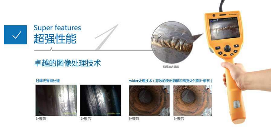 C50電控高清工業(yè)內(nèi)窺鏡,5寸高清LCD顯示屏,圖像更細(xì)膩、色彩更真實(shí),圖像分辨率960×720,真實(shí)百萬像素,陽光屏,卓越的圖像處理技術(shù),還原真實(shí)細(xì)節(jié)。