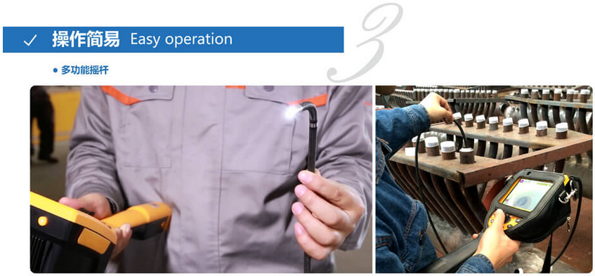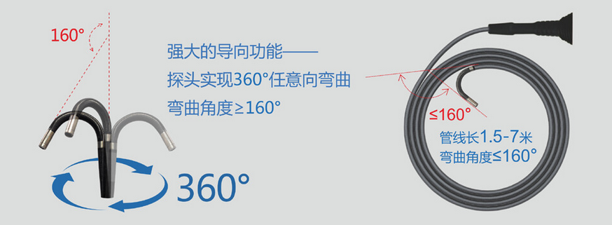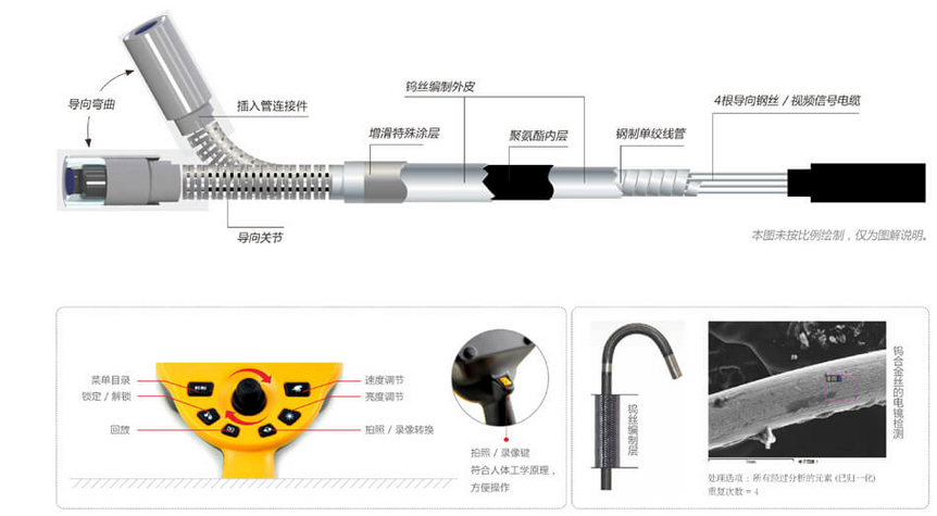 C50電控高清工業(yè)內(nèi)窺鏡運(yùn)用長距離信號傳輸及導(dǎo)向傳動(dòng)技術(shù),支持插入管7米,并且轉(zhuǎn)角可達(dá)120°,這一技術(shù)突破可以充分運(yùn)用在管道、集箱或大型設(shè)備中。