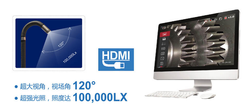 C50電控高清工業(yè)內(nèi)窺鏡微軟雅黑后置大功率LED照明,光纖導(dǎo)光,照度高達(dá)10萬Lx,適用于黑暗及惡劣環(huán)境,照度是普通內(nèi)窺鏡的50倍,并具有亮度7級循環(huán)調(diào)節(jié)功能,檢測中可根據(jù)環(huán)境光源及時(shí)調(diào)整。多景深、多視場角,讓初次使用者也能獲得良好的檢測效果。配備HDMI視頻高清輸出接口,通過專用數(shù)據(jù)線與PC端連接,非常適用于機(jī)修師檢測,有助于快速找到被檢測物的問題,解決難題。
