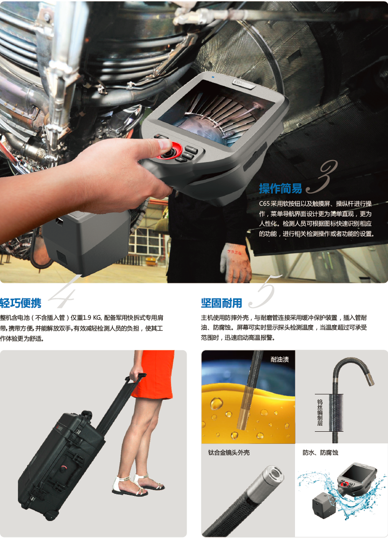 2、可更換不同直徑和長度插入管,檢測人員可根據(jù)現(xiàn)場情況快速更換不同直徑、不同長度、不同景深的插入管,實現(xiàn)一機多用,以最少的成本滿足更多的現(xiàn)場需求;