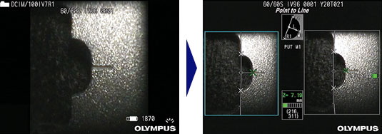 我們的立體測量技術(shù)提供了從不同角度的缺陷測量簡單操作。新采用的屏幕切換功能可以輕松就快速切換單獨的缺陷檢測畫面到測量畫面。