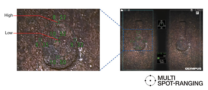 IPLEX NX擁有獨(dú)特的多點(diǎn)物距測量功能,能夠?qū)崟r(shí)測量從內(nèi)窺鏡到檢查表面上多個(gè)點(diǎn)之間的距離。該功能提供了實(shí)時(shí)表面信息,不會(huì)暫?;蛑袛鄼z查。
