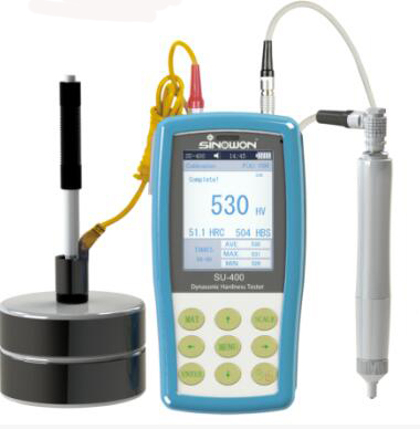 SU-400一機(jī)雙用,可以用超聲的方法測量比較薄、粗糙度比較好的試樣,也可以用里氏方法測量比較粗糙的試樣。在一臺機(jī)器上,不僅用超聲的方法彌補(bǔ)了里氏硬度計無法測量電鍍層和硬度層試樣的難題,還用里氏的方法彌補(bǔ)了超聲波不好測量粗晶材料硬度的問題。