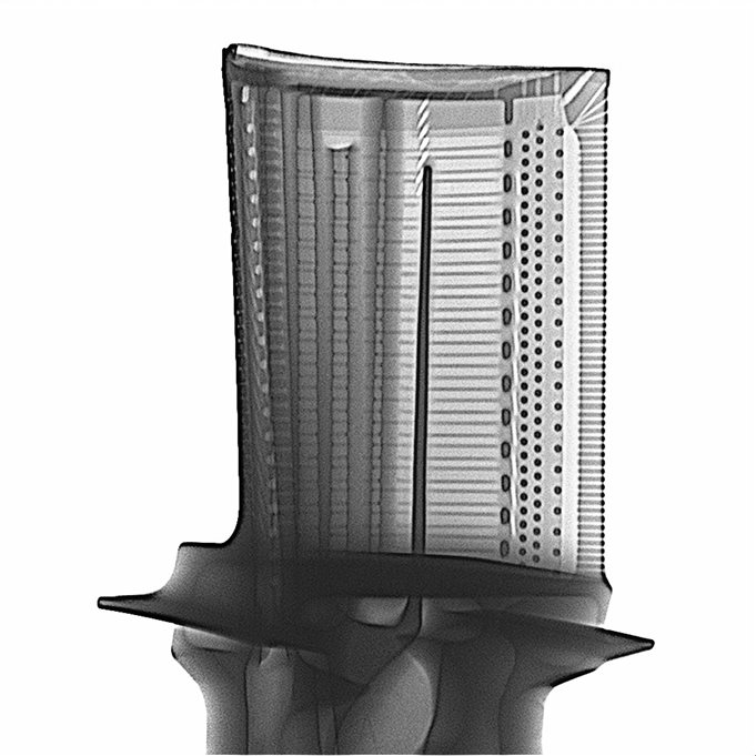 數(shù)字平板檢測(cè)器可以提供最佳圖像質(zhì)量 | 數(shù)據(jù)處理機(jī)—代碼(DPM-Codes)的可靠讀數(shù) | 渦輪葉片(內(nèi)部結(jié)構(gòu)復(fù)雜)的X射線圖像 |