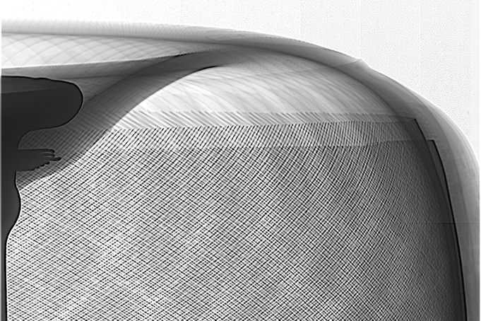 汽車輪胎輪轂的X光正切面圖像顯示了使用 Y.MU2000-D ToW的優(yōu)越性。輪胎和輪轂的相對位置非常明顯。汽車輪胎的2層鋼制帶束層清晰可辨,且其在輪胎內(nèi)的位置可以確定。