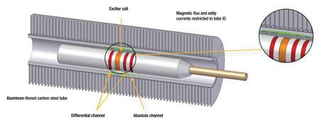 近場檢測(NFT)技術(shù)是一種專為翅扇式碳鋼管件檢測量身定做的快速、經(jīng)濟的解決方案。這種新技術(shù)依靠一種簡單的驅(qū)動器-拾波器渦流探頭設(shè)計,使信號分析簡便易行。
