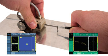 用于腐蝕檢測的發(fā)射-接收探頭可以探到鋁材料中6毫米(0.25英寸)的深度。